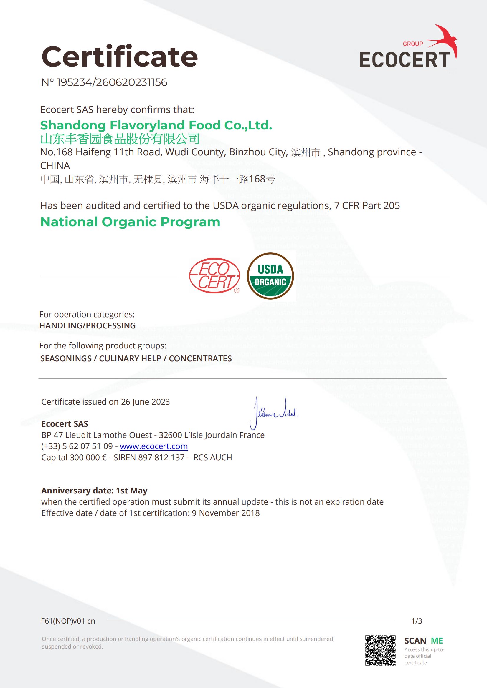 ? ? 豐香園小磨香油、芝麻調(diào)和油、花生醬、芝麻醬、混合醬、熟芝麻制品均已通過英國零售商協(xié)會(huì)BRC認(rèn)證、歐盟 美國和國內(nèi)有機(jī)、HACCP體系認(rèn)證,是山東省出口食品備案企業(yè)。